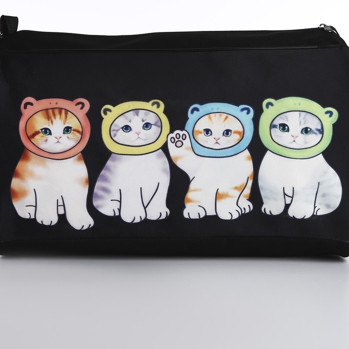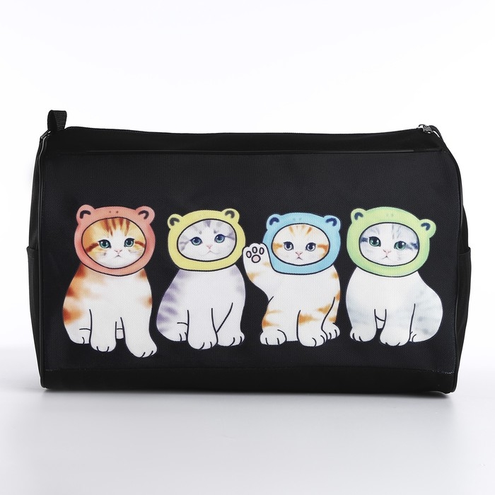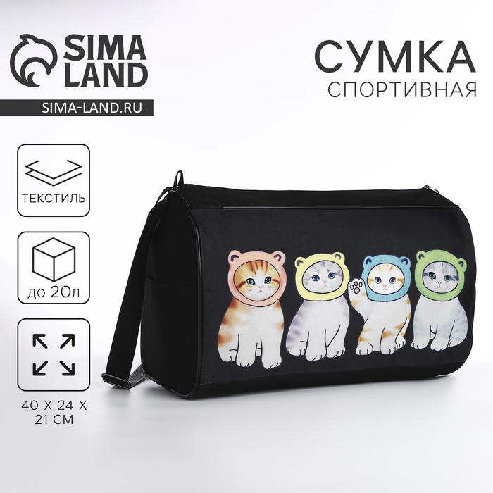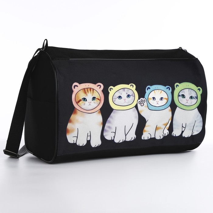 Сумка детская спортивная для девочки «Котята в шапках», 40х24х21, отд на молнии, чёрный