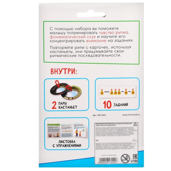 Развивающий набор «Звонкие щелкунчики» поможет малышам от 3 лет потренировать чувство ритма, фонематический слух и научите его концентрировать внимание на заданиях.