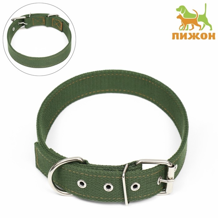 Ошейник брезентовый двухслойный, 72 х 3,5 см, ОШ 45-60 см, хаки