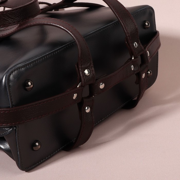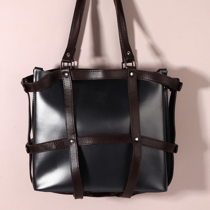 Портупея для сумки из искусственной кожи, 43 × 35 × 15 см, цвет коричневый/серебряный