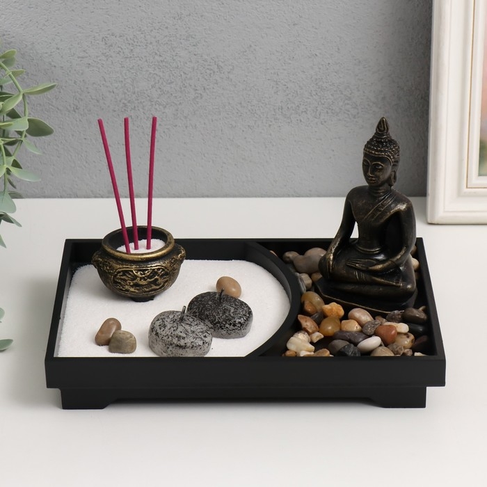 Сад Дзен "Бронзовый Будда" песок+аромапалочки+камни 22х15х12,5 см