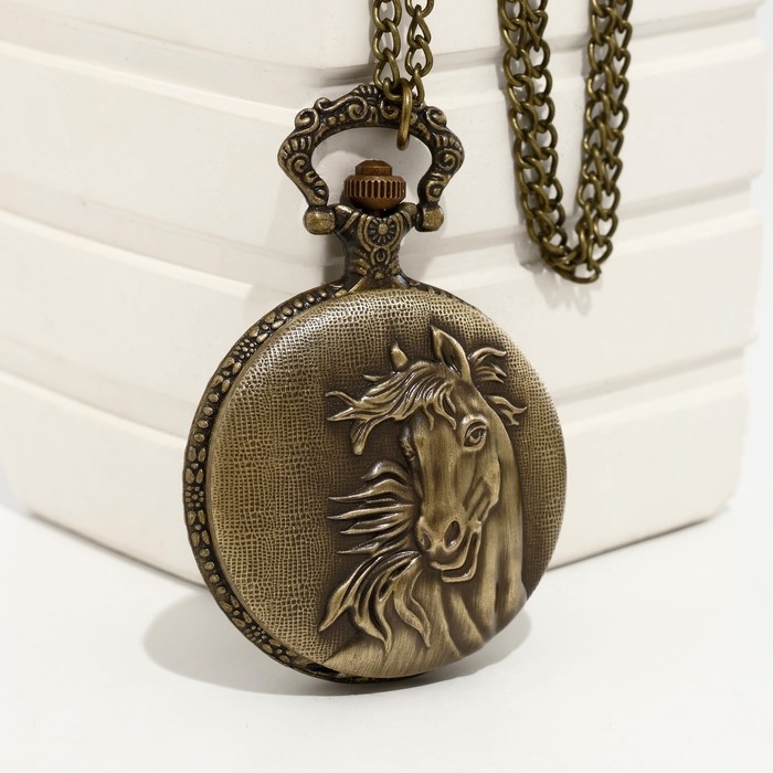 Часы карманные "Конь", кварцевые, d циферблата-4.5 см