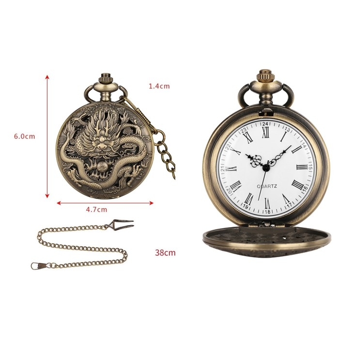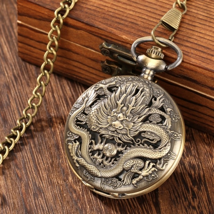 Часы карманные "Дракон", кварцевые, d циферблата-4.7 см, цепочка l-38 см