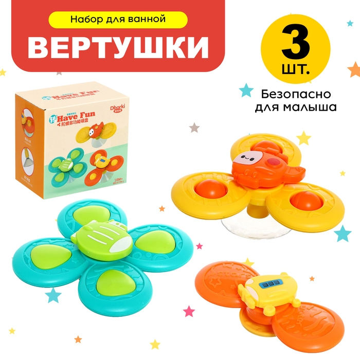 Набор спиннеров для ванной на присосках «Транспорт», 3 шт. в наборе