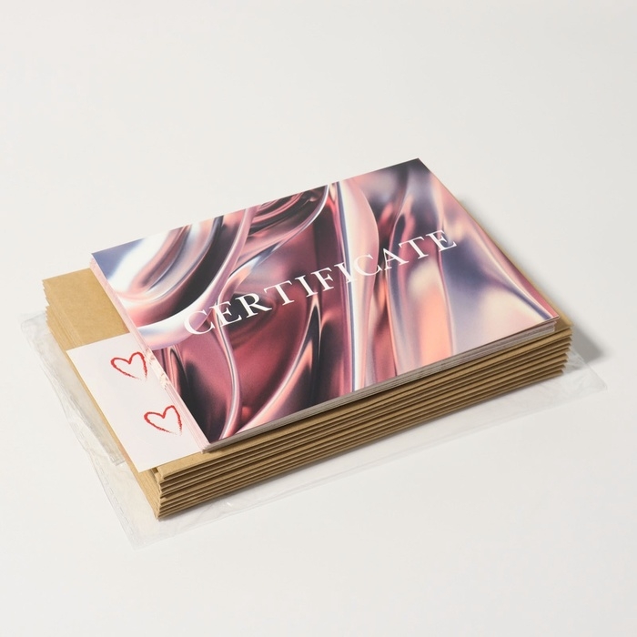 Набор подарочных сертификатов – будет приятным презентом для Ваших клиентов. Набор состоит из 10 сертификатов в комплекте с крафтовыми конвертами и милыми наклейками.