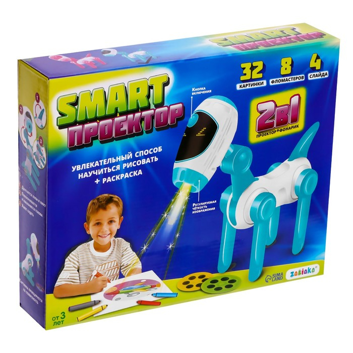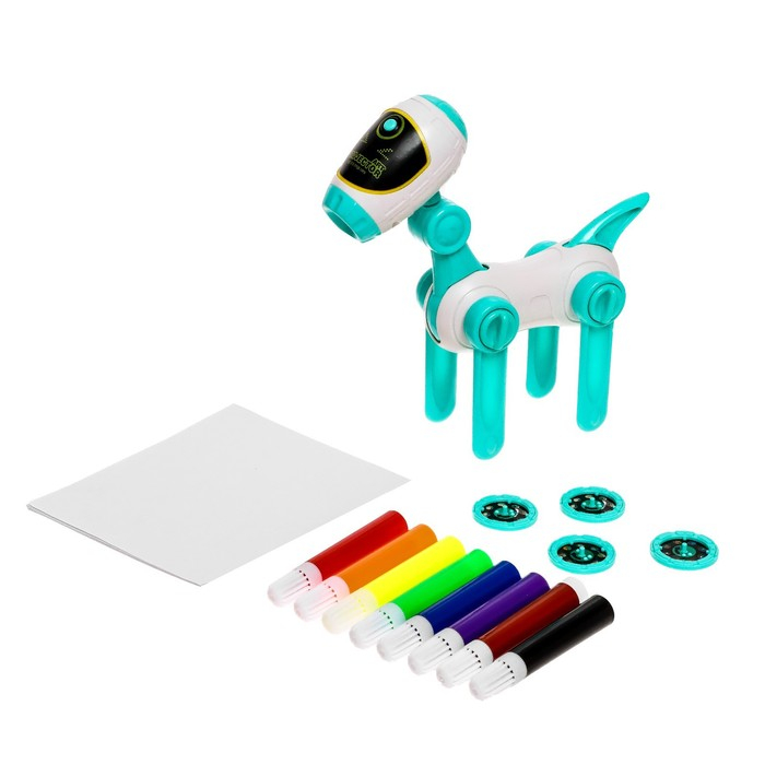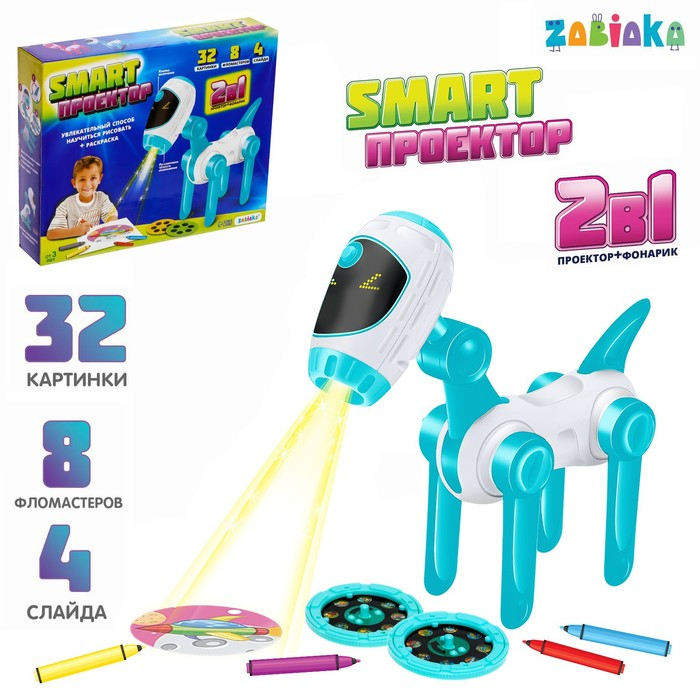 Проектор-лампа для рисования «Космическая собачка», 4 слайда, 32 картинки, 8 фломастеров, МИКС