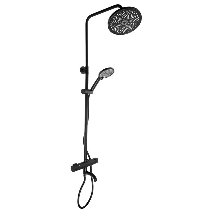 Душевая система ZEIN Z3895, с термостатом, лейка верхняя d=23 см, ручная 12,5 см, чёрная