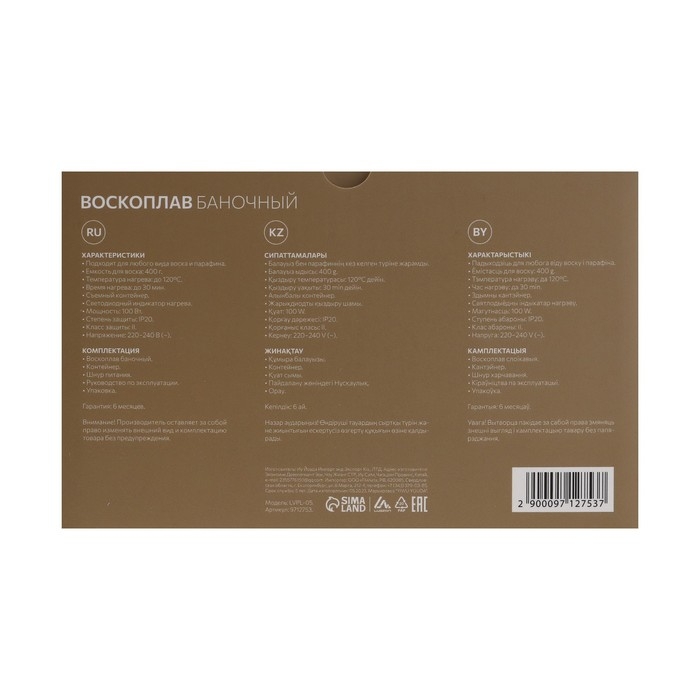 Воскоплав Luazon LVPL-05, баночный, 100 Вт, 400 г, регулировка температуры, белый