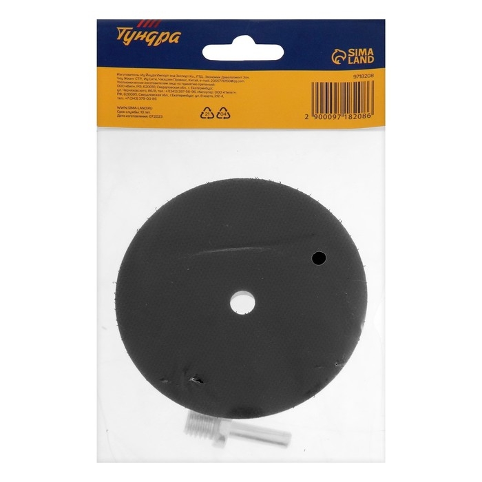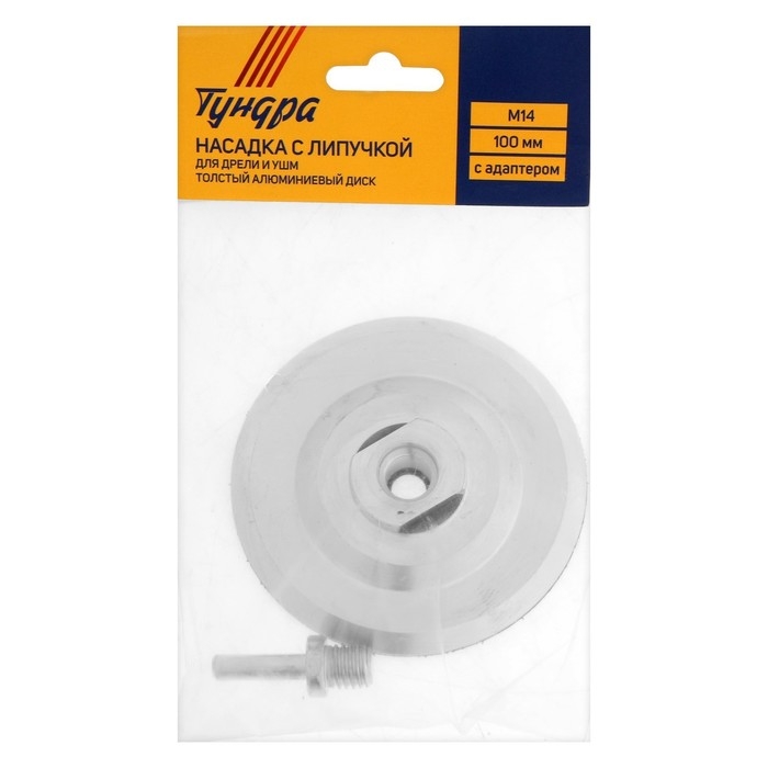 Насадка с липучкой для дрели и УШМ ТУНДРА, толстый алюминиевый диск, с адаптером, 100 мм