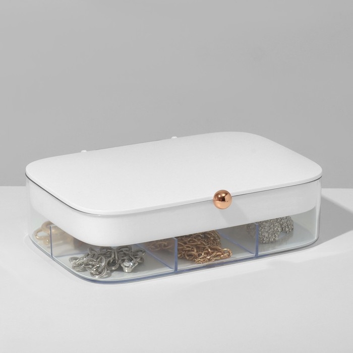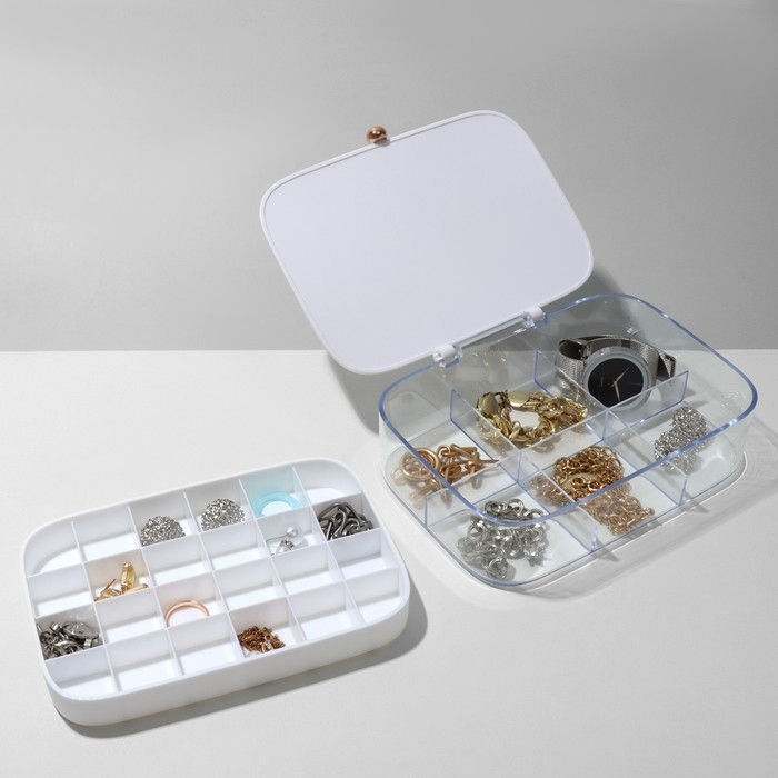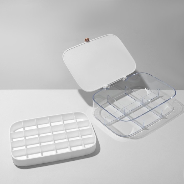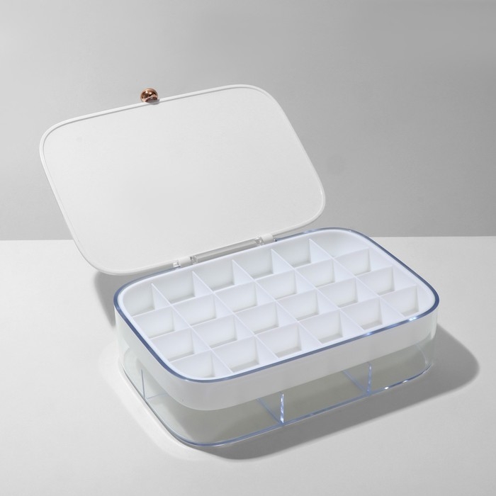 Подставка для украшений «Шкатулка» 2 яруса, 30 ячеек, 18×14×5 см, пластик, цвет белый