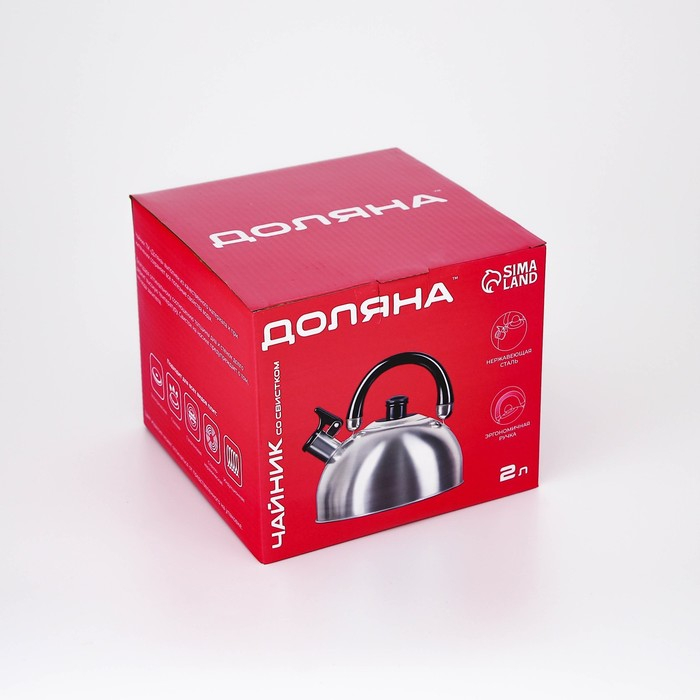Чайник со свистком из нержавеющей стали Доляна «Чёрная ночь», 2 л, индукция, цвет хромированный