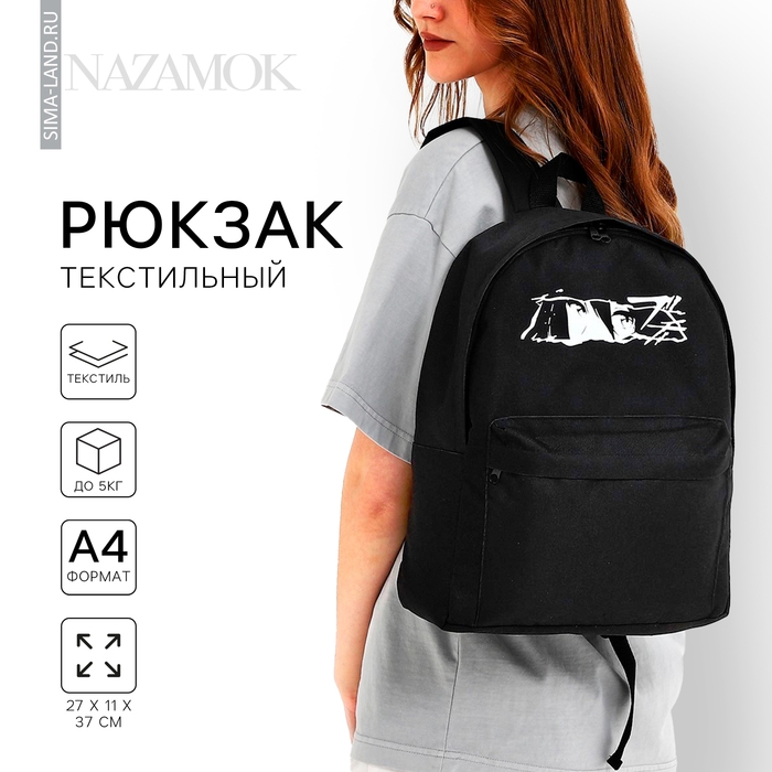 Рюкзак школьный текстильный «Аниме», с карманом, 27х11х37, цвет чёрный