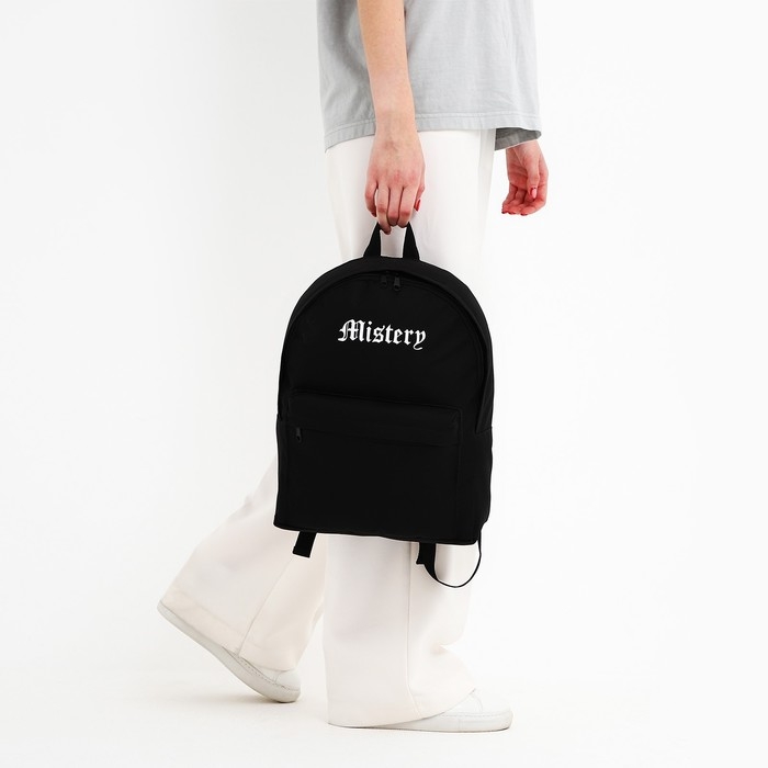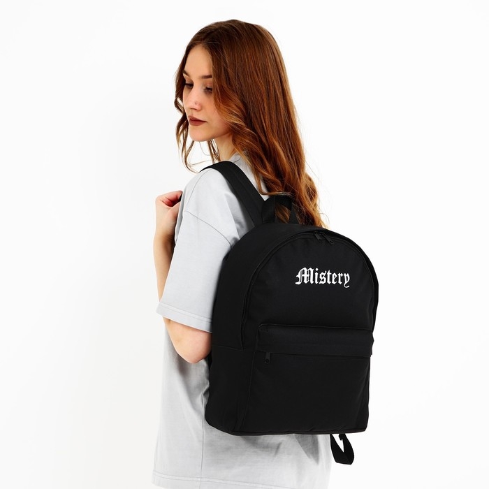 Рюкзак школьный текстильный Mystery, с карманом, 27х11х37, чёрный