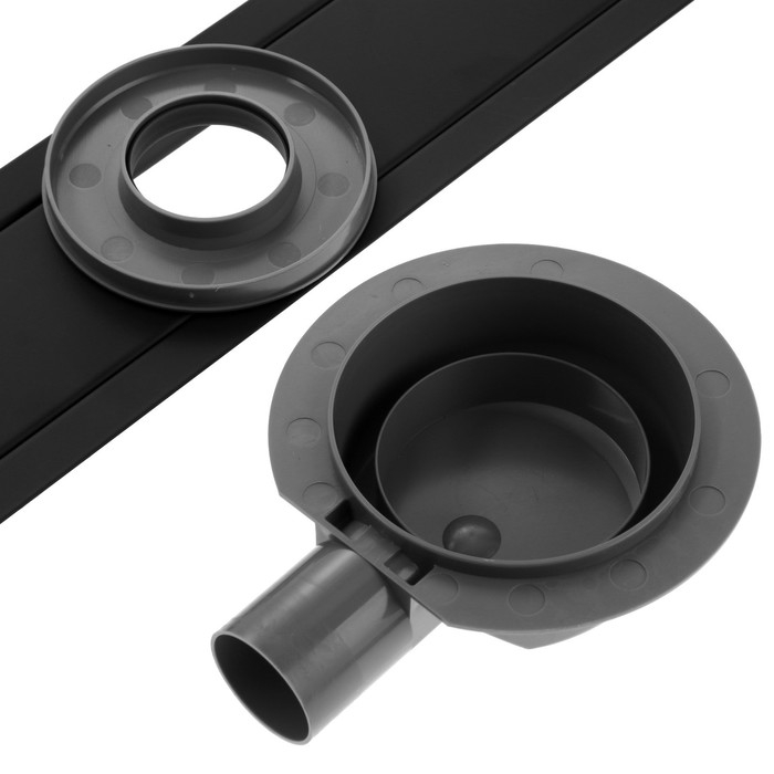 Трап ZEIN engr, c флaнцeм свободного вращ 360°, 7*100 см, d=40/50 мм, нерж сталь, черный
