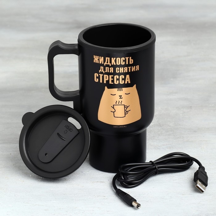 Термокружка с подогревом от USB «Для снятия стресса», 450 мл, нержавеющая сталь