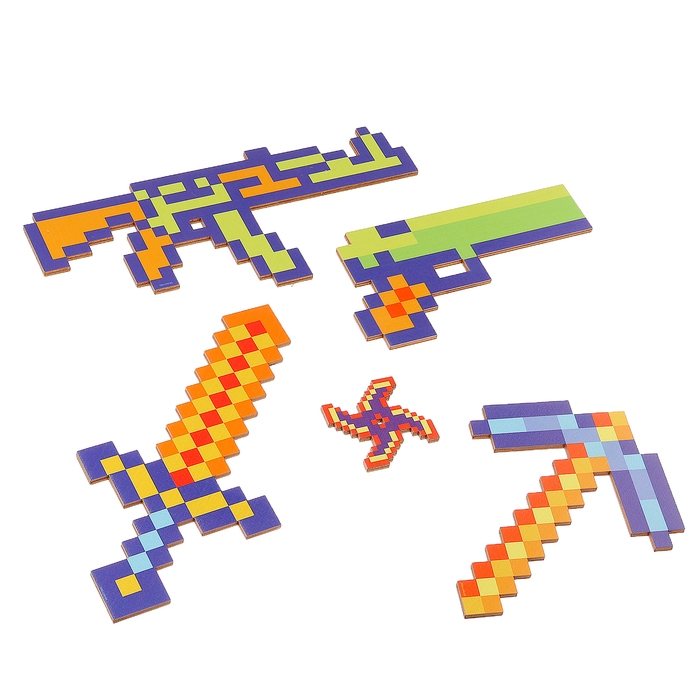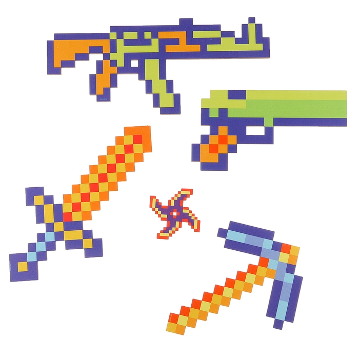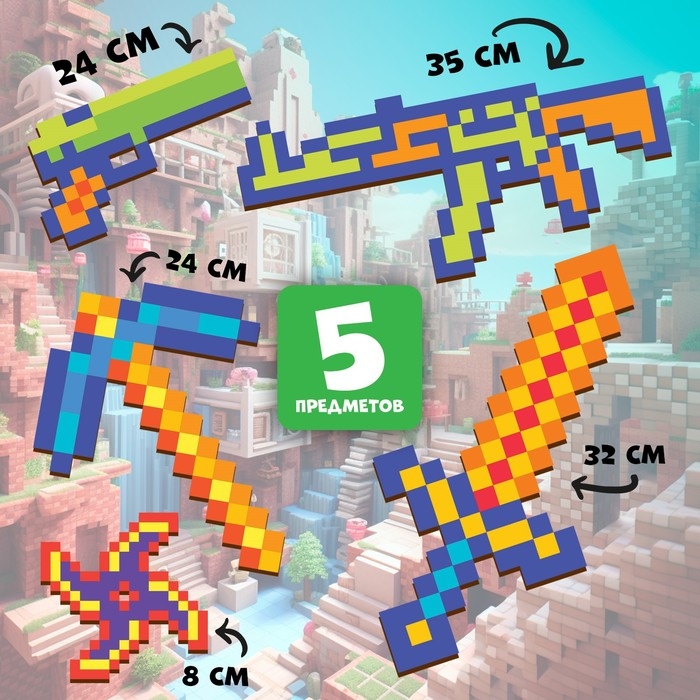 Деревянное оружие детское сувенирное «Пиксели», 5 предметов