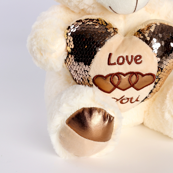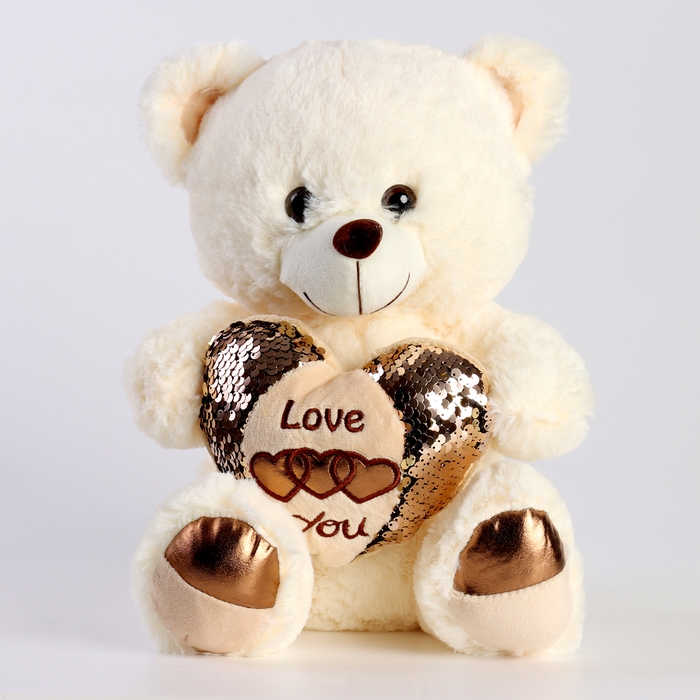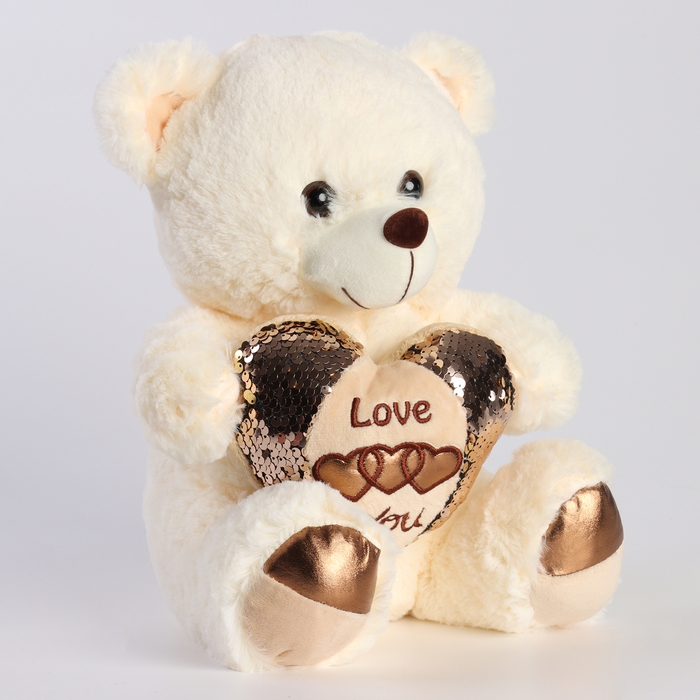 Мягкая игрушка «Мишка» с сердцем, 30 см, цвет светлый