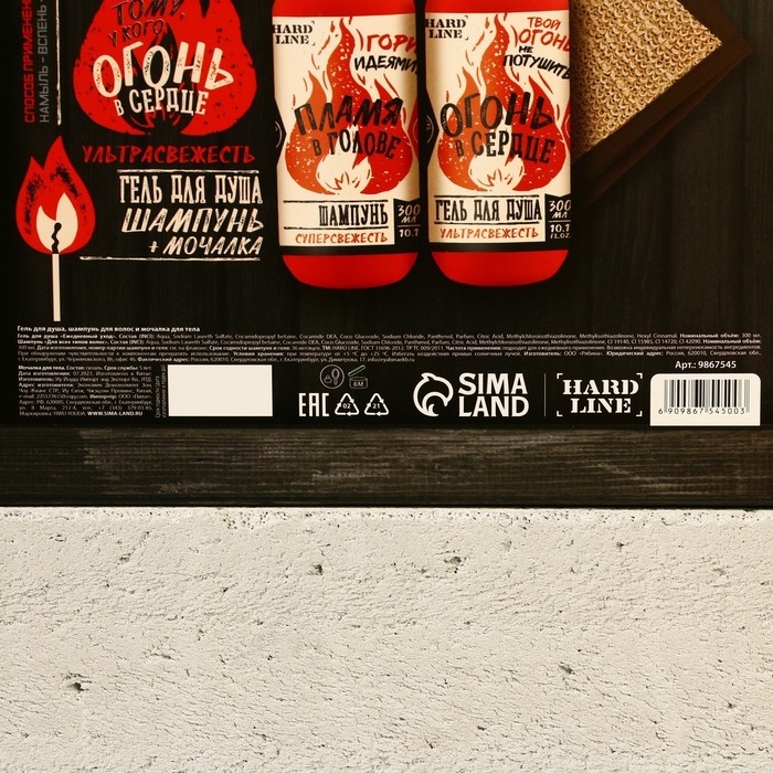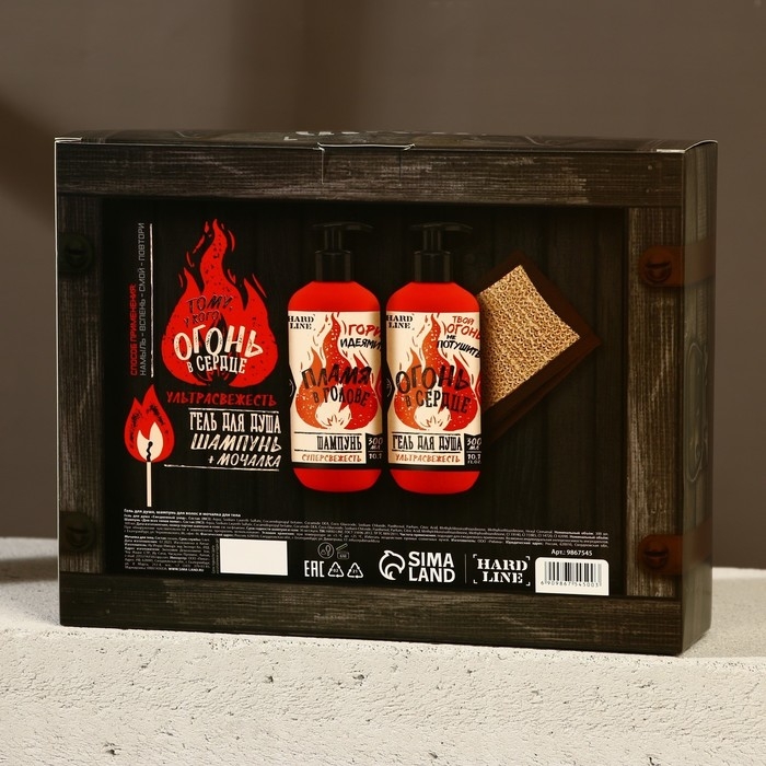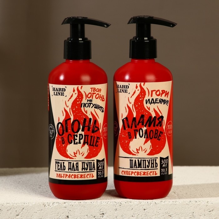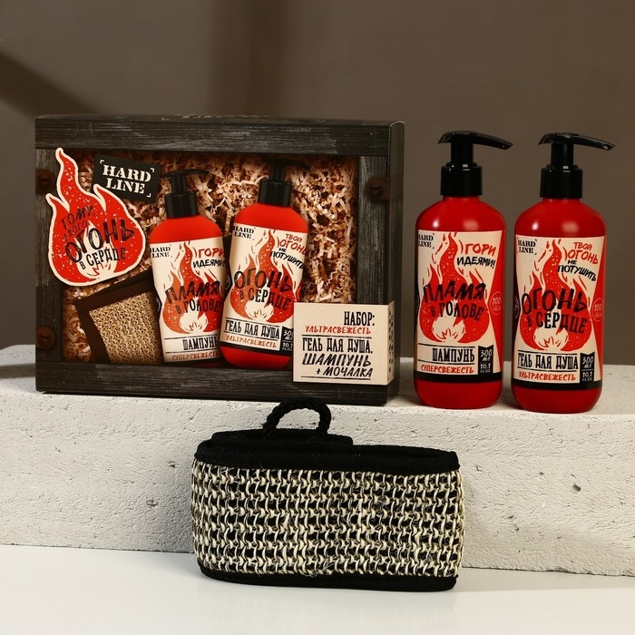 Набор "Тому, у кого огонь в сердце", гель для душа и шампунь, 2х300, мочалка с ручками