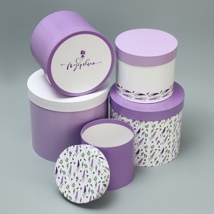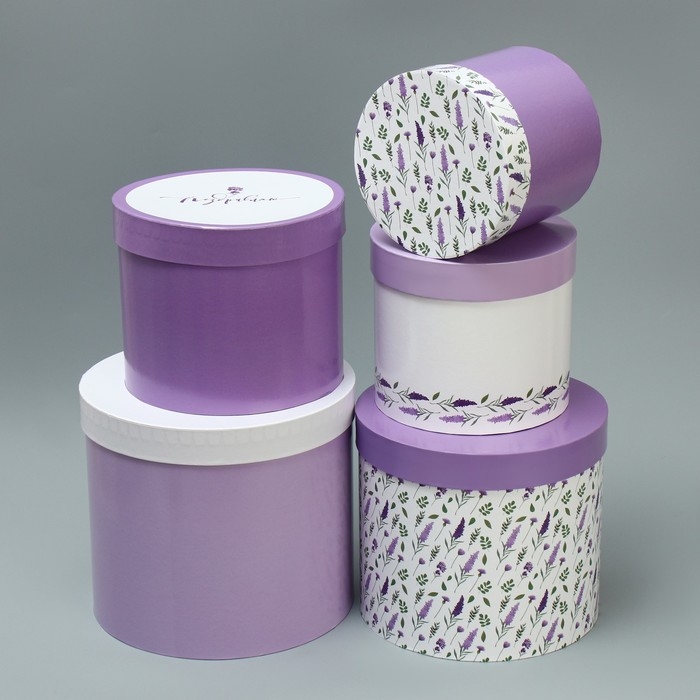 Набор шляпных коробок 5 в 1, упаковка подарочная, «Лаванда», 13 х 14 ‒ 19.5 х 22 см
