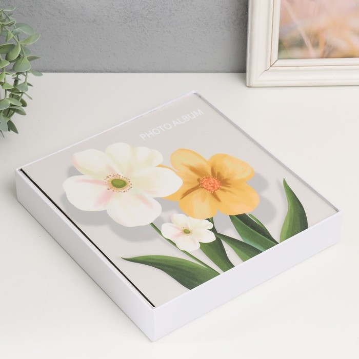 Фотоальбом на 100 фото 10х15 см "Крупные цветы с зелеными листьями" 22х4х23 см
