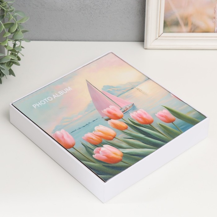 Фотоальбом на 100 фото 10х15 см "Тюльпаны и парусник" 22х4х23 см