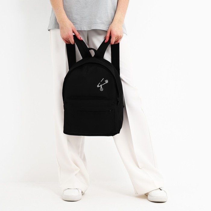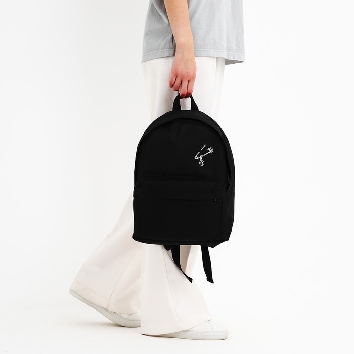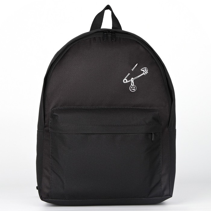 Рюкзак школьный текстильный «Булавка», с карманом, 27х11х37, цвет чёрный