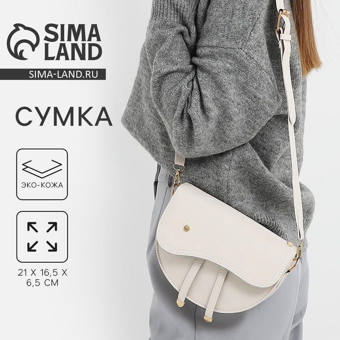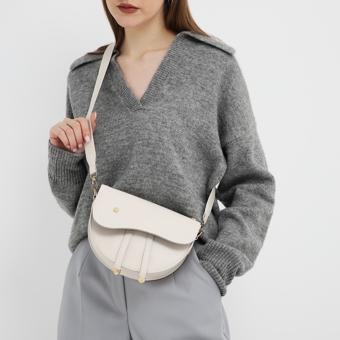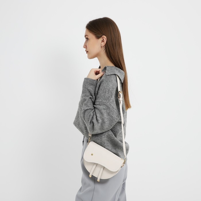 Сумка женская седло на плечо, отдел на молнии, 21х16,5х6,5 см, цвет белый