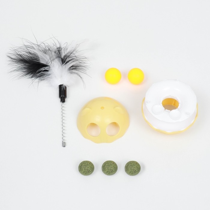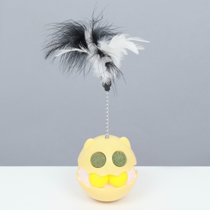 Игрушка-неваляшка с кошачьей мятой и пером, 9,5 см, жёлтая