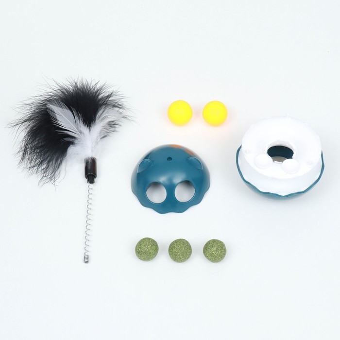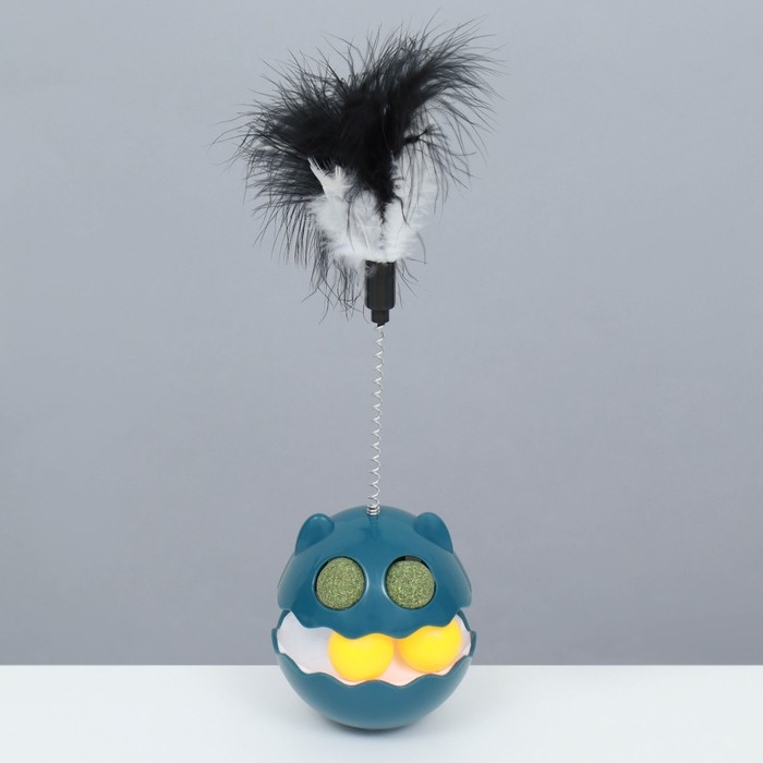 Игрушка-неваляшка с кошачьей мятой и пером, 9,5 см, синяя