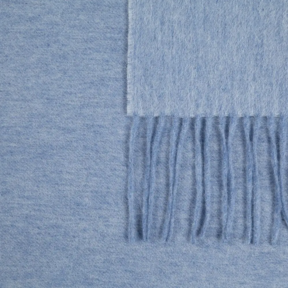 Широкий палантин с едва заметным узором плетения открывает простор фантазии — его можно использовать как шарф, головной убор или декоративный элемент для верхней одежды.