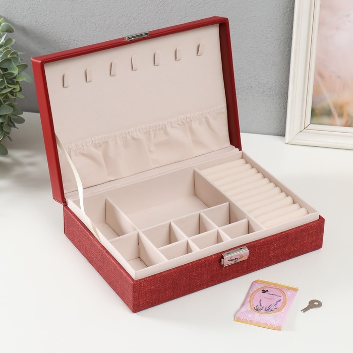 Шкатулка кожзам для украшений "Красная" комбинированная 26,7х18,5х7,5 см