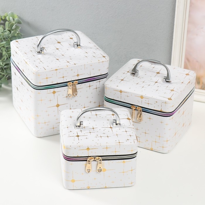 Шкатулка кожзам с зеркалом "Вспышка на белом" н-р 3 шт 16,5х16,5х14 15х15х10,5 19х19х19 см