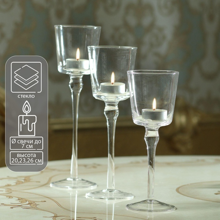 Подсвечник стекло набор 3 шт "Романтика свечей" высота 26см, 23 см, 20 см
