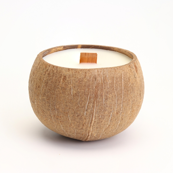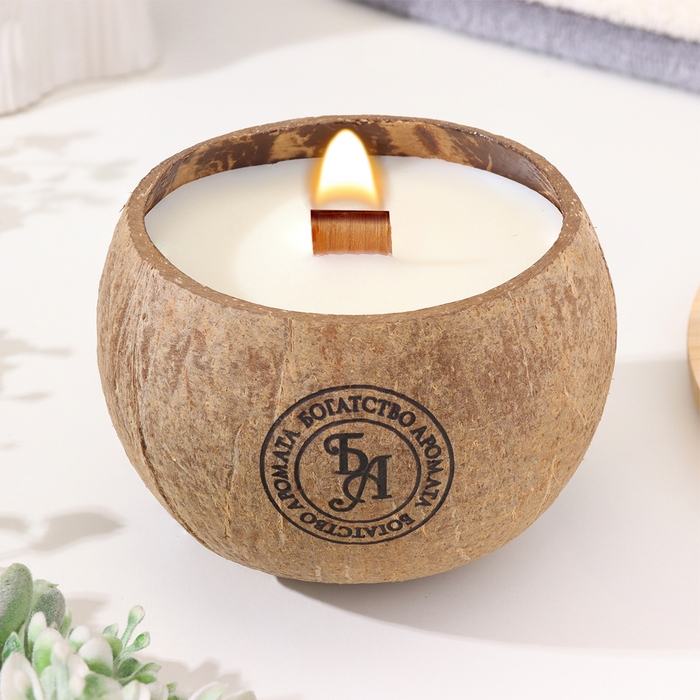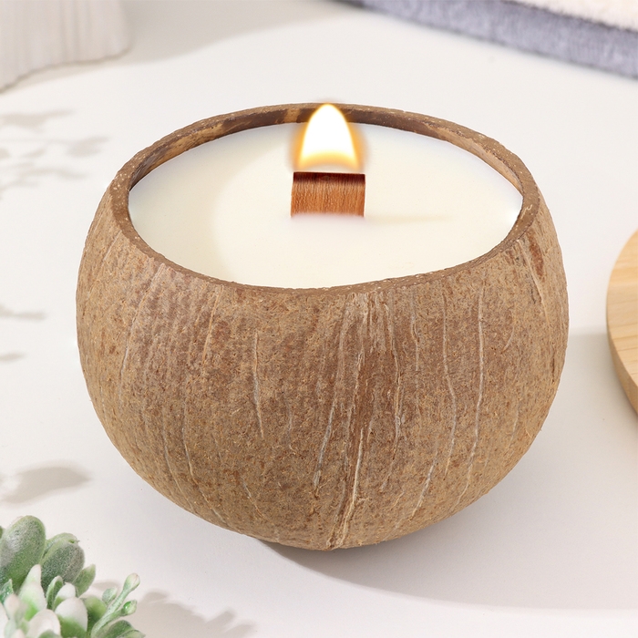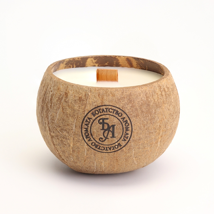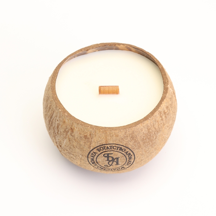Свеча в кокосе ароматическая, эрл грей, соевый воск, 8х10 см, в коробке