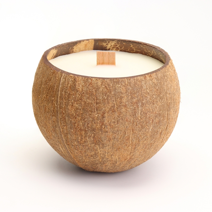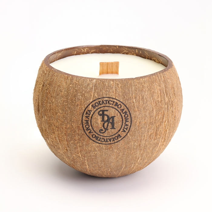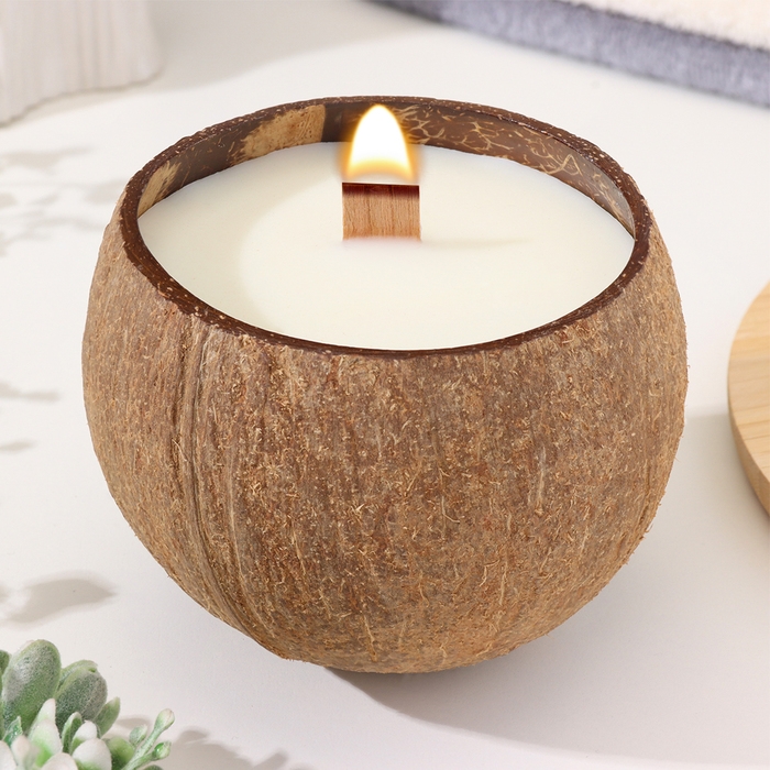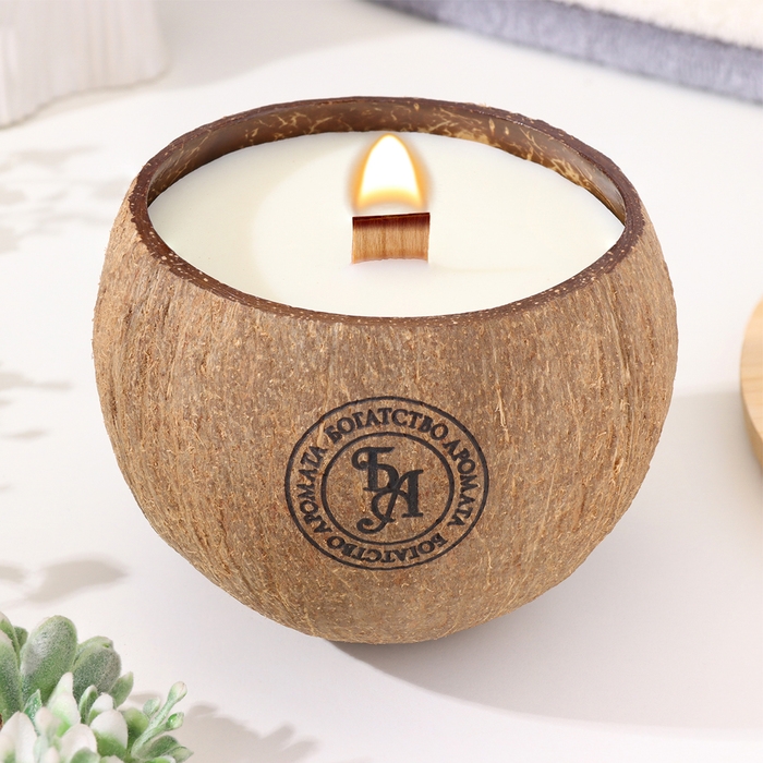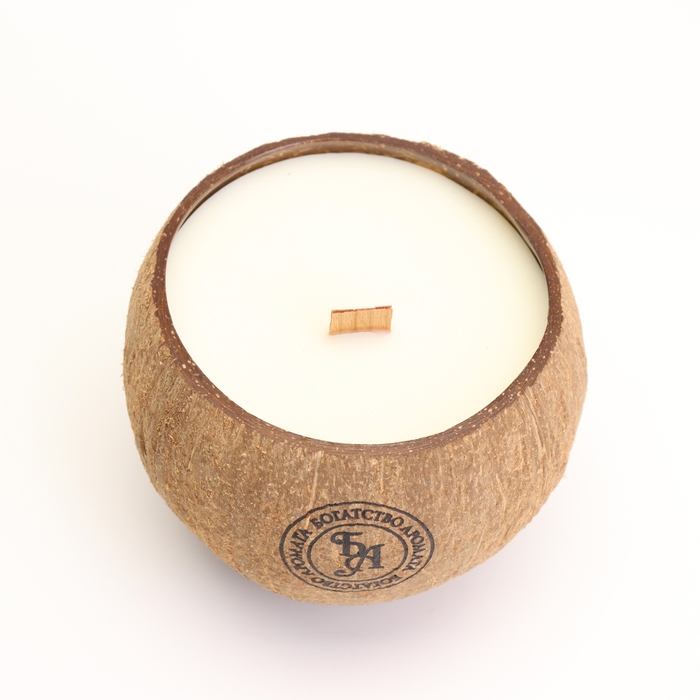 Свеча в кокосе ароматическая, английская груша и фрезия, соевый воск, 8х10 с, в коробке