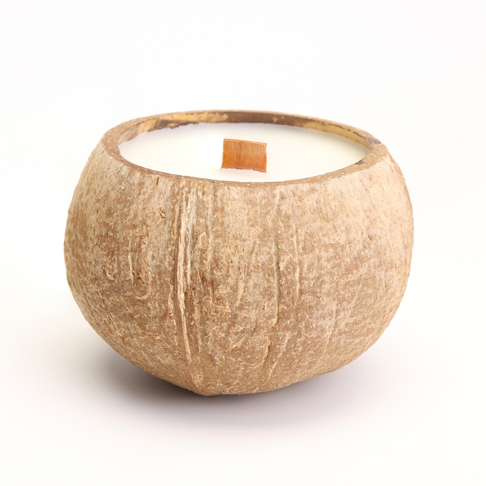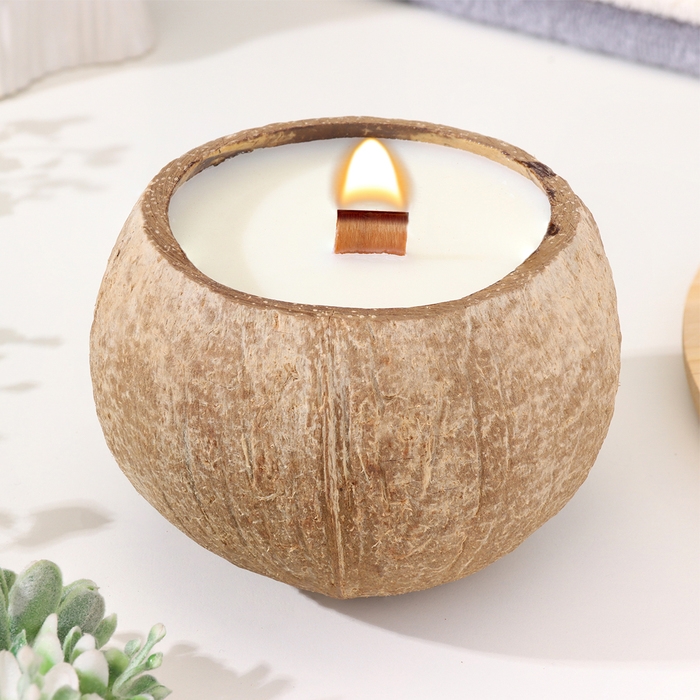 Свеча в кокосе ароматическая, белый чай, соевый воск, 8х10 см, в коробке
