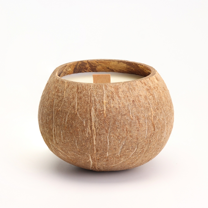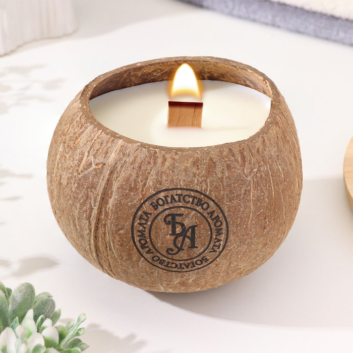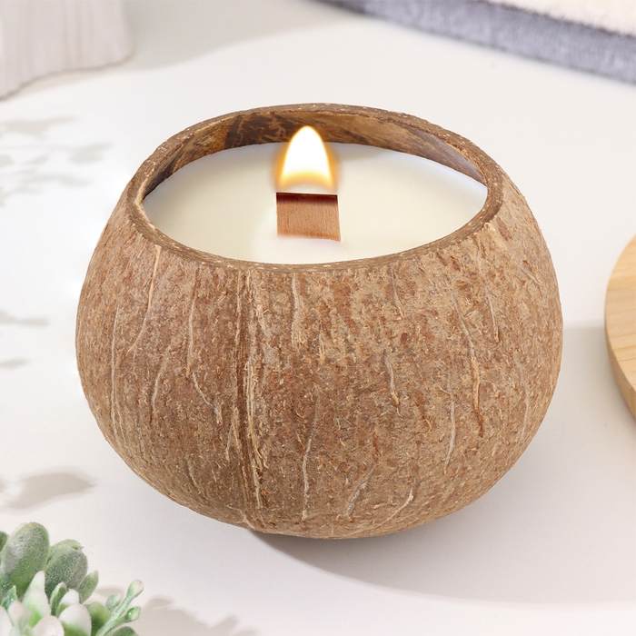Свеча в кокосе ароматическая, зелёный чай, соевый воск, 8х10 см, в коробке