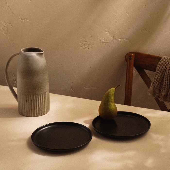 - Современный дизайн: гладкая поверхность и глубокий чёрный цвет придают тарелкам стильный вид.