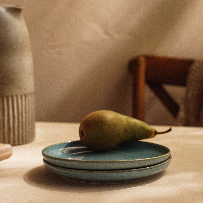 Создайте атмосферу уюта и стиля на своем столе с фарфоровым набором «Аззура» от SL Home. Эти изысканные тарелки диаметром 20,3 см привнесут в ваш дом нежность бирюзового оттенка, который ассоциируется с морской гладью и свежестью летнего утра. Плавные линии полосок на поверхности тарелок создают динамичный и утонченный образ, который дополнит любую сервировку.