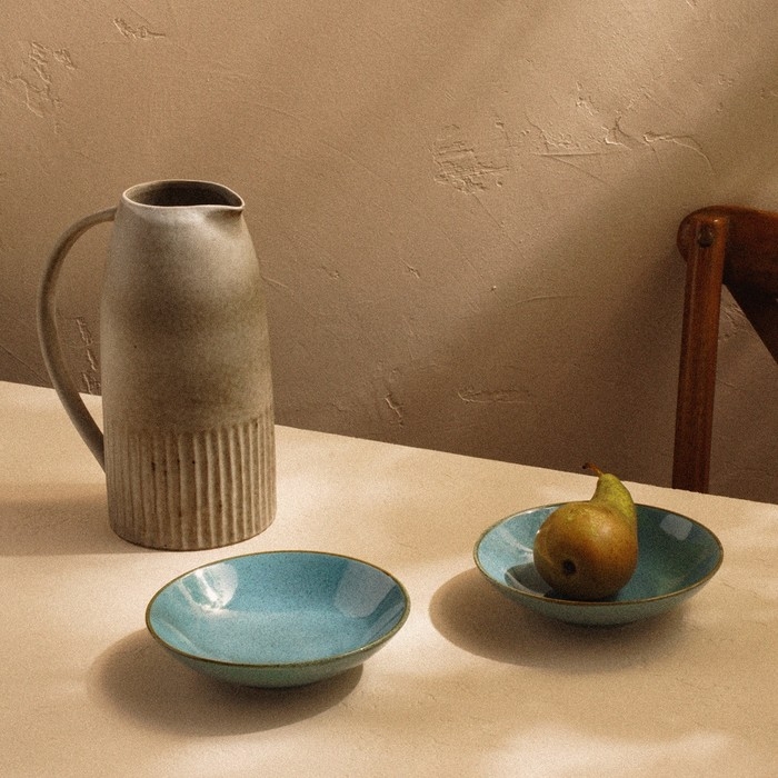 Мягкий бирюзовый цвет с утончёнными полосками, украшающими поверхность, придаёт изделиям стильный и современный вид, который будет гармонично сочетаться с любой сервировкой. Гладкая текстура фарфора обеспечивает приятные тактильные ощущения и лёгкость в уходе — миски можно смело мыть в посудомоечной машине и использовать в микроволновой печи.