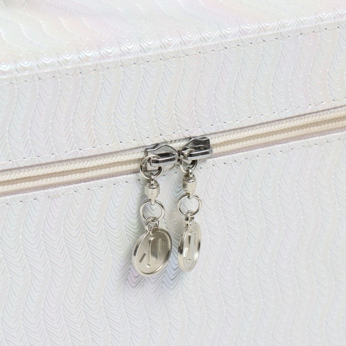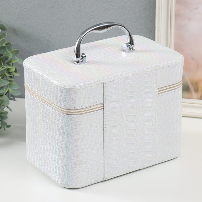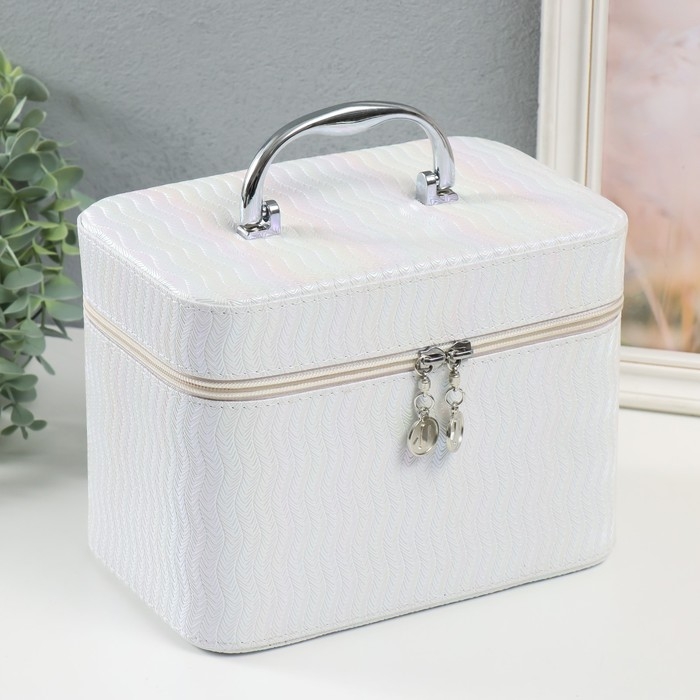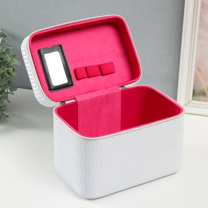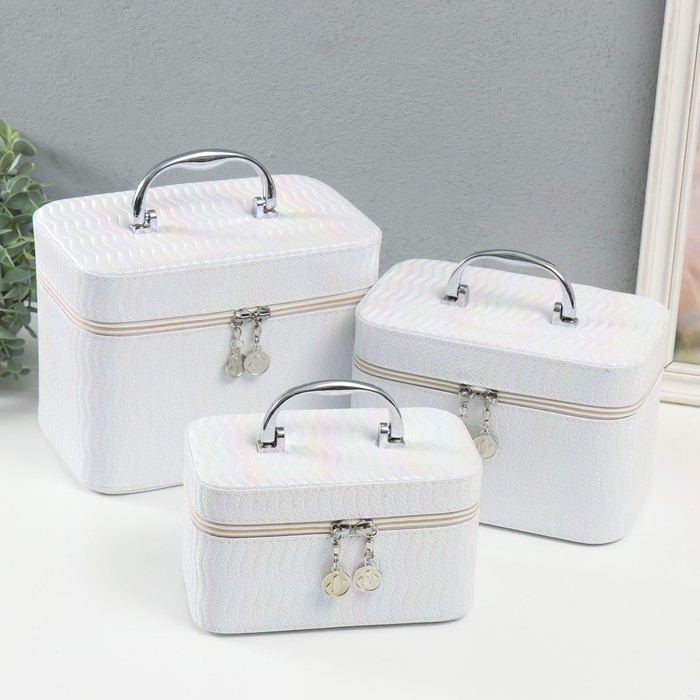 Шкатулка кожзам с зеркалом "Волны. Белый" набор 3 шт 21х13,5х13;18,5х10,5х10;16,5х15х23 см