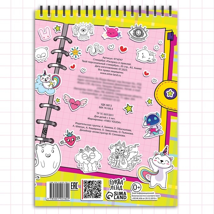 Раскраска-наклейки «Твой персональный стикербук», Аниме