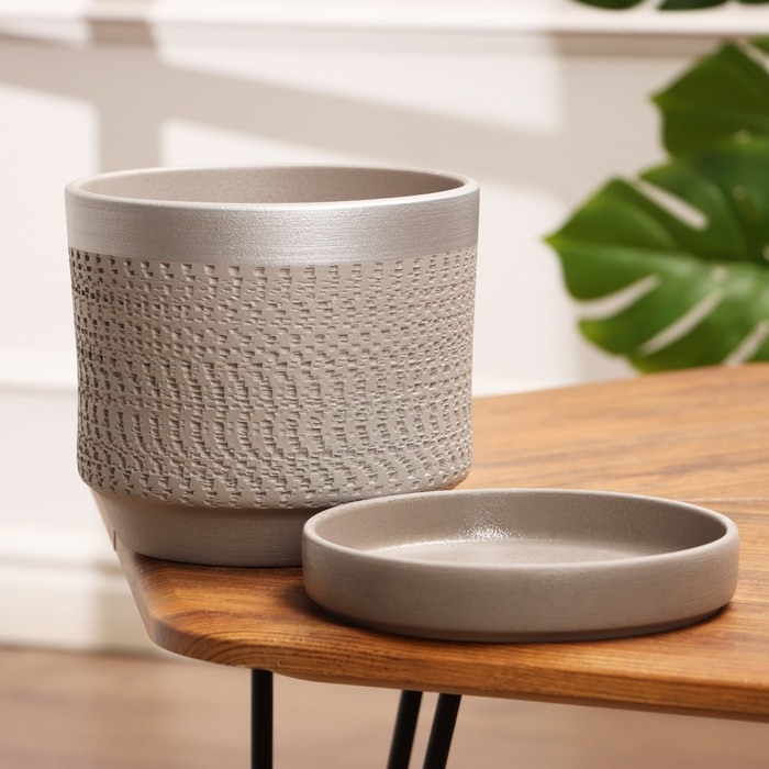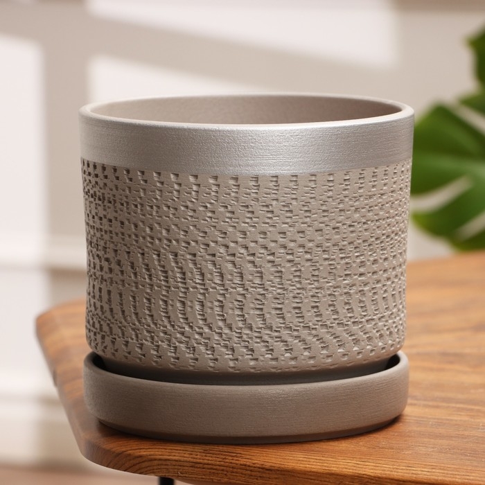 Горшок цветочный "Брюссель" серый серебро цилиндр №3, 2,6 л