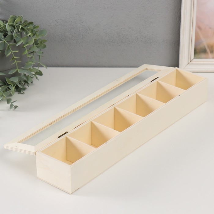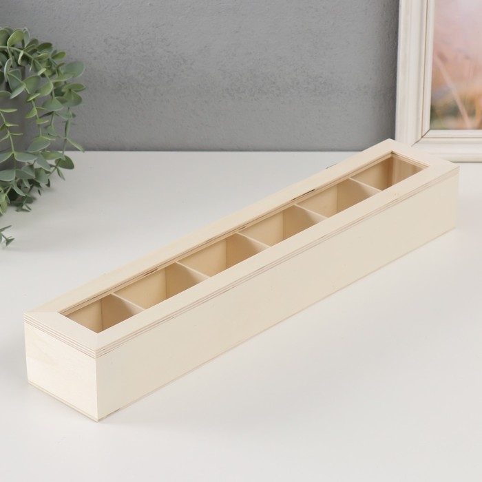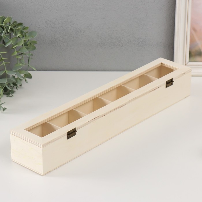 Шкатулка дерево под роспись со стеклом с делениями "Прямоугольная" без замка 45х8,5х6,5 см