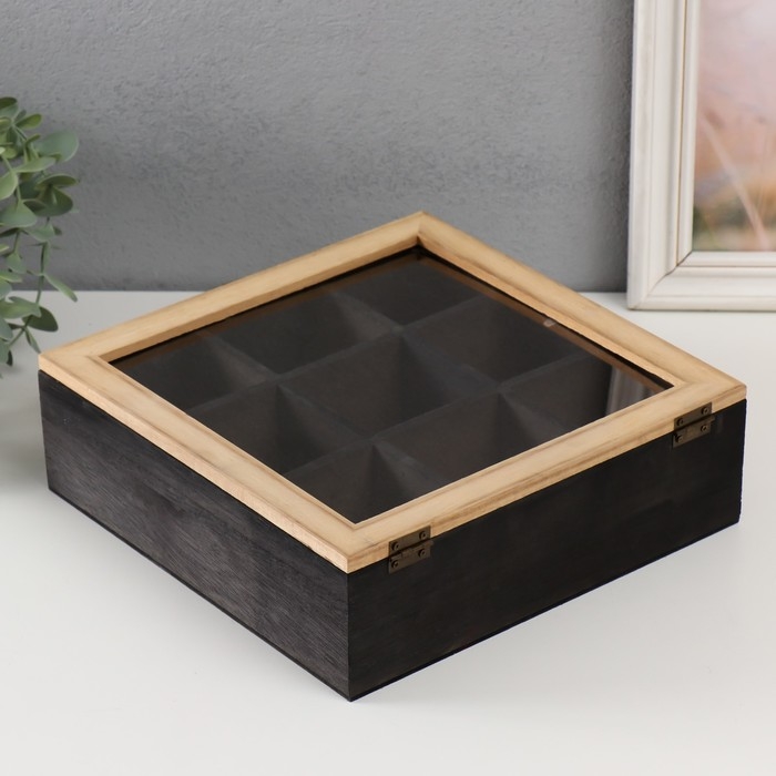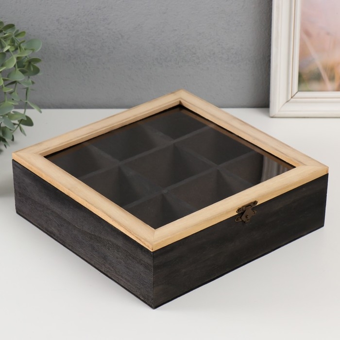 Шкатулка дерево с делениями "Квадратная" 24х24х7,5 см