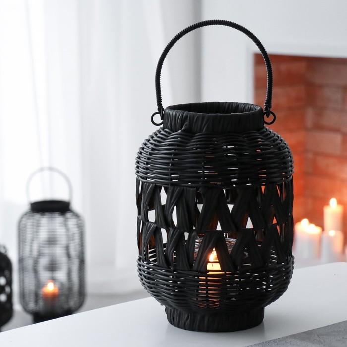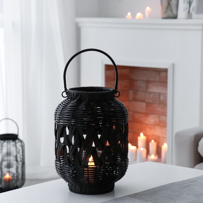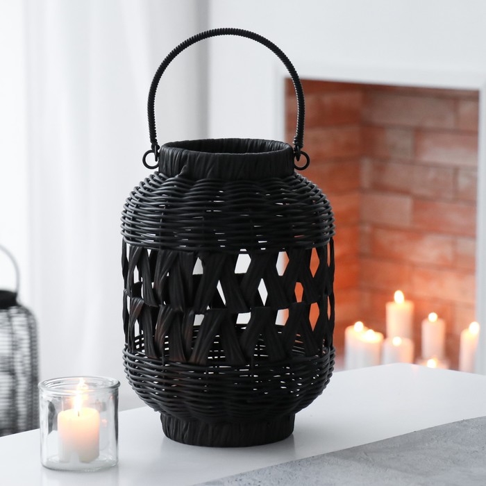 Подсвечник пластик "Фонарик. Корзинка" чёрный 30х21х21 см
