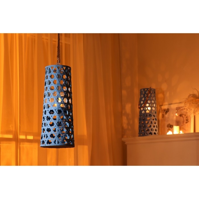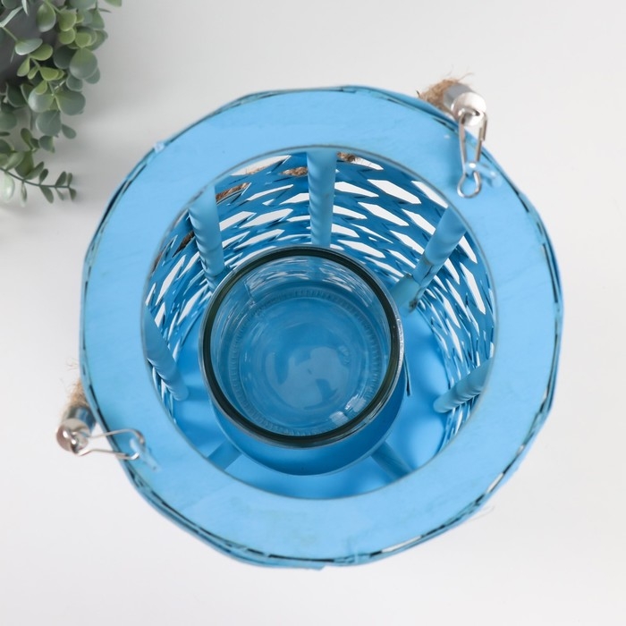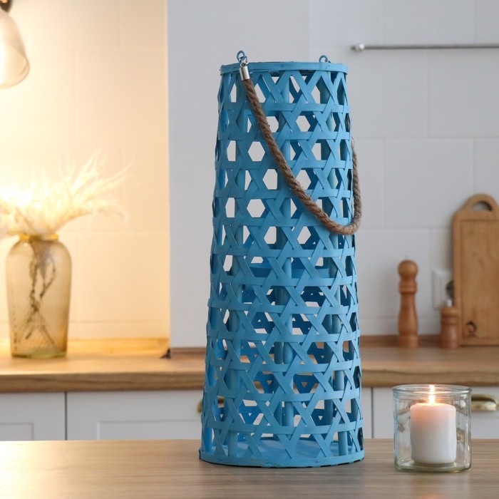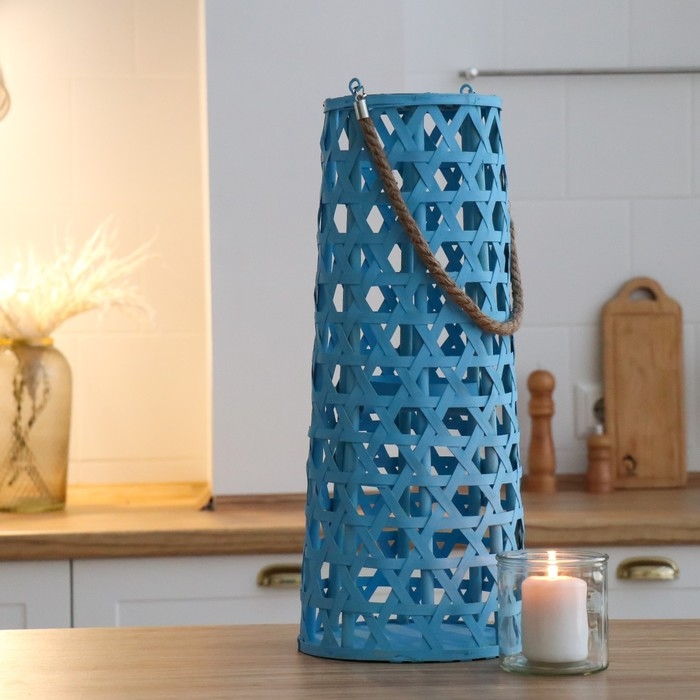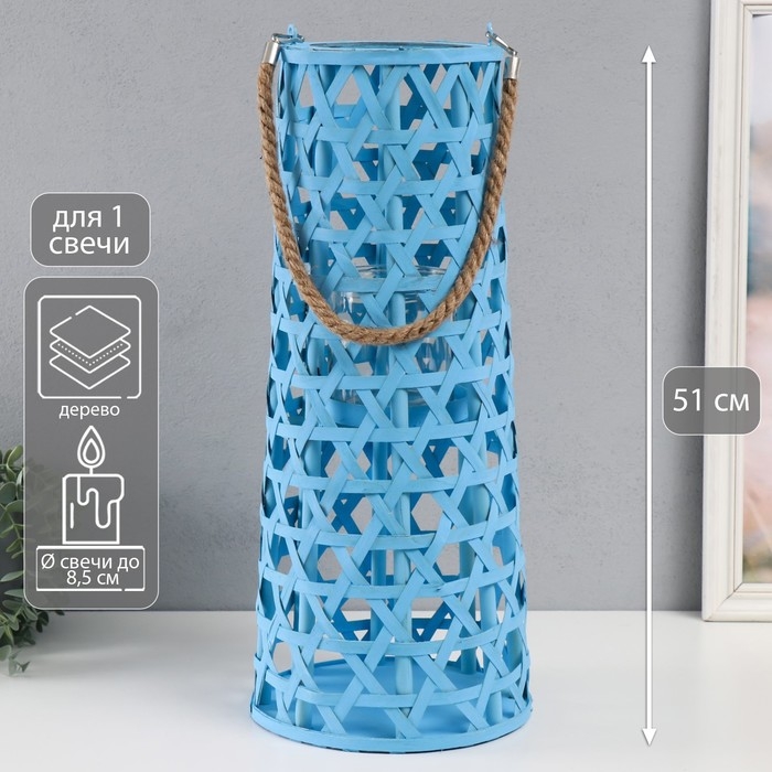 Подсвечник дерево "Фонарик. Звёздное плетение" голубой 51х16х16 см