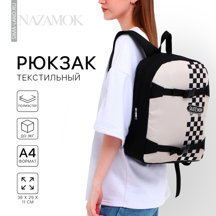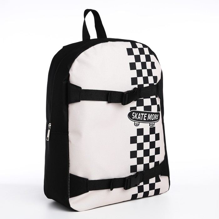 Рюкзак школьный текстильный с креплением для скейта «Skate more», 38х29х11 см, цвет чёрный, отдел на молнии