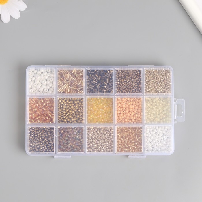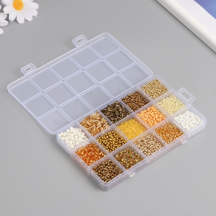 Бисер стекло 6/0, 8/0, 12/0 в шкатулке "Золото" стеклярус 15,5х9,5х1,6 см