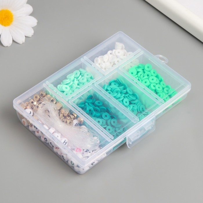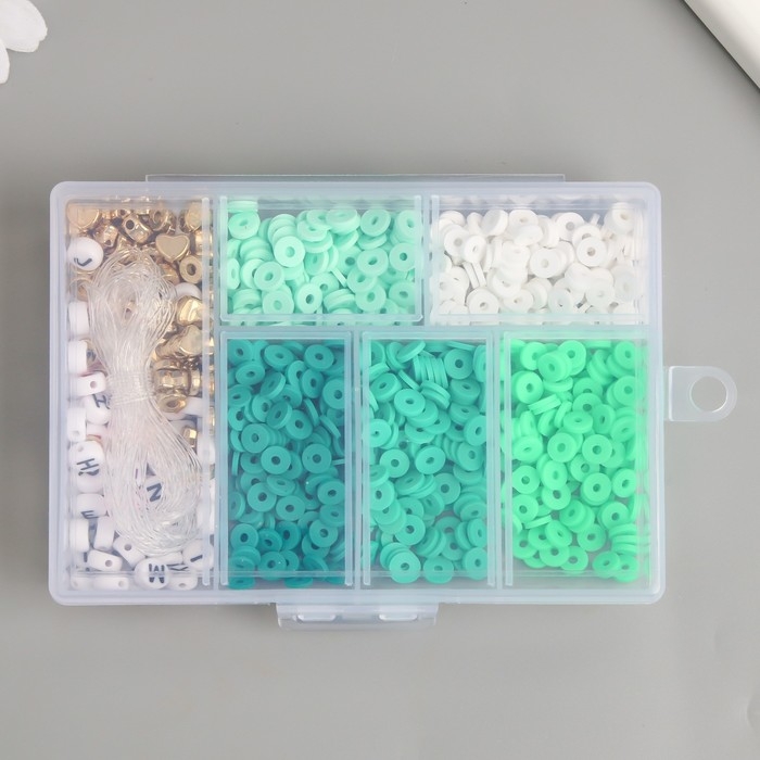 Бусины в шкатулке "Зелёные" нить 0,8 мм 5 м 12х8,4х2,2 см